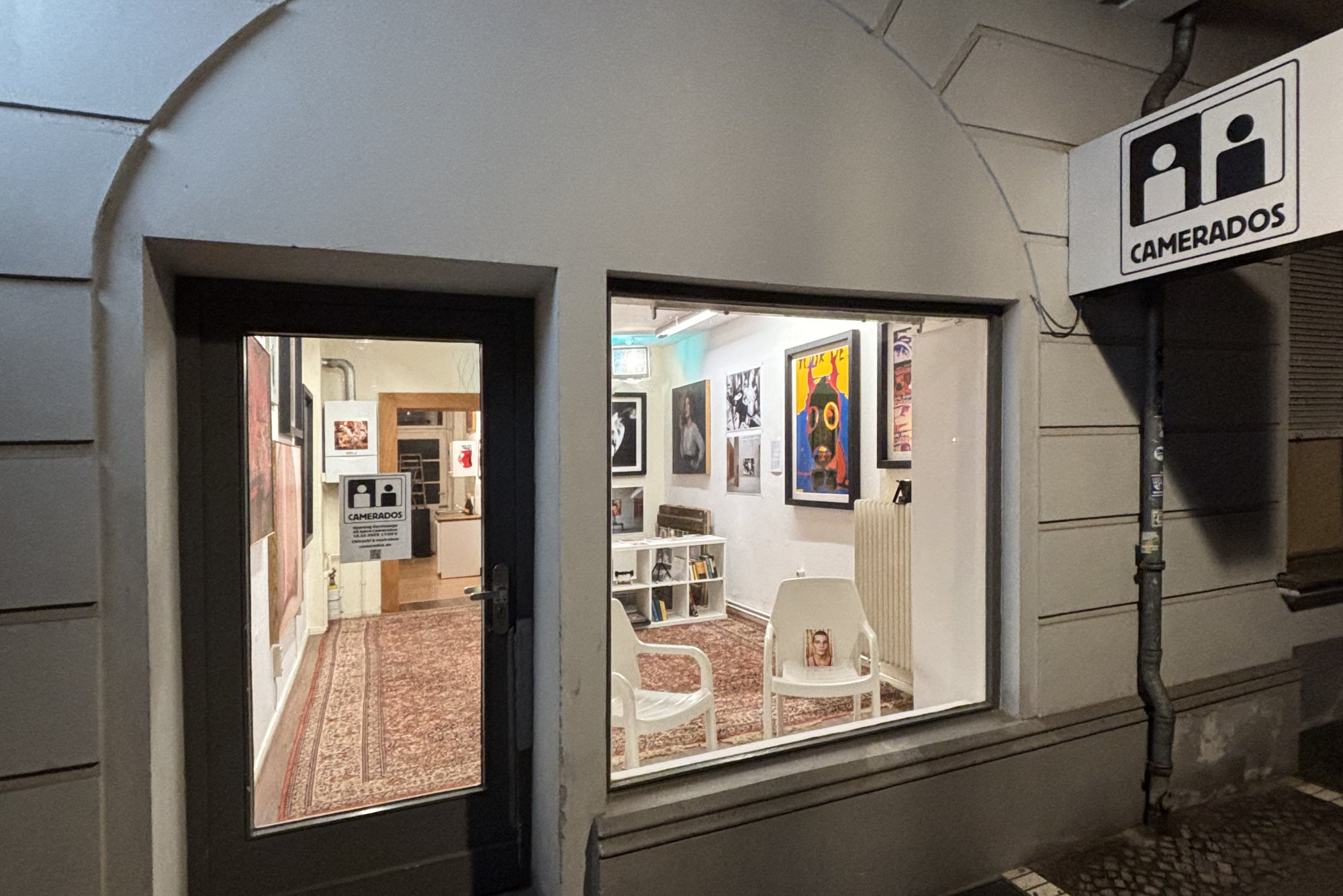 In den nuller Jahren hat das Künstler-Duo Camerados (Chinaski & nostrokes) Voyeure und deren Protagonistinnen auf mehreren Erotikmessen der Republik fotografiert. 2005 stellten sie ihre Arbeiten für die Outdoor-Dauerausstellung 365 Tage Camerados dem Gebäudekomplex Torstraße 109 in Berlin-Mitte zur Verfügung. Zwanzig Jahre später eröffnen sie einen Pop-up-Store mit allen Arbeiten ihrer gemeinsamen Sammlung. Von kleinen Werken bis zu großformatigen Bildern umfasst die Sale-Kollektion über 60 Arbeiten.